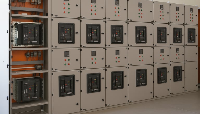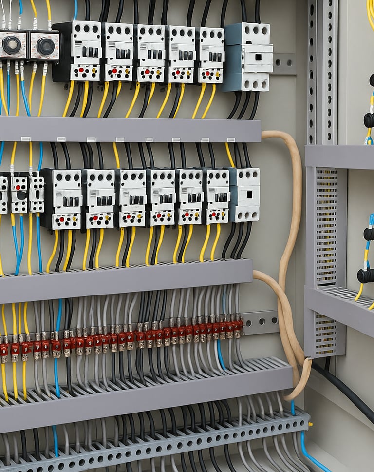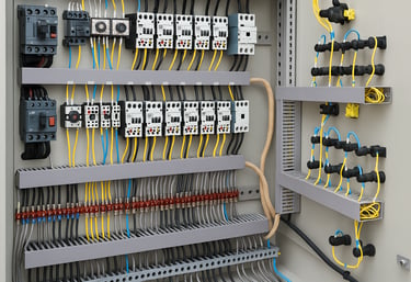 Conexão de condutores em barramentos, disjuntores, tomadas e luminárias. Montagem de painéis e quadros com componentes identificados e barramentos aterrados.